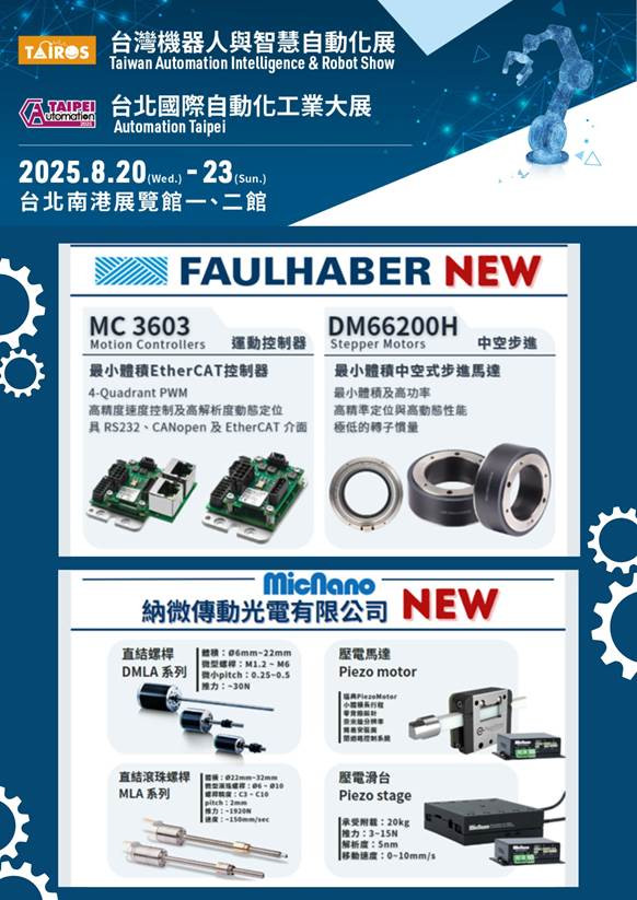 Latest News 最新消息 首頁 最新消息 2025/08/14 北河精密新訊 邀請您參觀「2025台灣機器人與智慧自動化展 \ 2025台北國際自動化工業大展( 2025 Tairos \ Automation Taipei)」 【北河精密機電有限公司】邀請您參觀「2025台灣機器人與智慧自動化展 \ 2025台北國際自動化工業大展( 2025 Tairos \ Automation Taipei)」地點:南港展覽館一館四樓攤位號碼:N012 四樓N區展示產品:線性制動器、微型直流馬達、微型無刷直流馬達、減速機、編碼器、速度控制器、位置控制器 歡迎設備商前來參訪,可以預先與業務討論想瞭解的產品,我們會在展場為您做服務介紹 參觀預先登錄連結 BACK